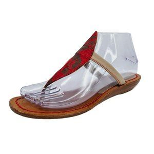 Gucci Vintage Sandal 38 8 Red Tan Leather Thong Knight Crest Slip On Snake Print