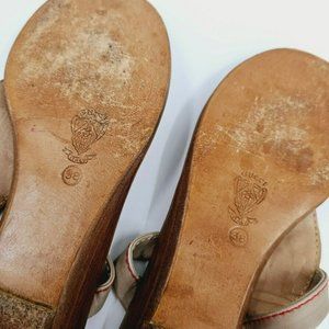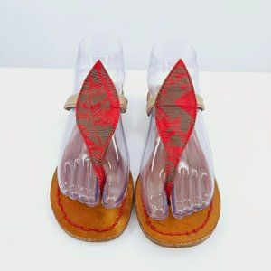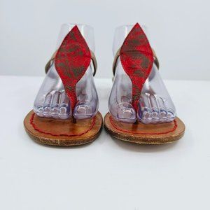 Gucci Vintage Sandals 38 8 Red Tan Leather Thong Knight Crest Slip On Snake Print