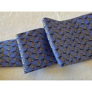 Gucci Vintage Silk Tie Blue Horsebit Equestrian Print 100% Silk Made in Italy