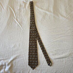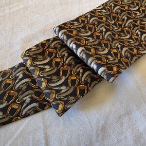 This rare Gucci 100% silk tie features the iconic horsebit chain pattern in brown, gold, and gray. A true heritage equestrian design that instantly elevates any look — timeless Italian luxury at its finest.