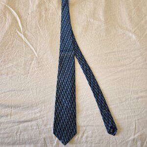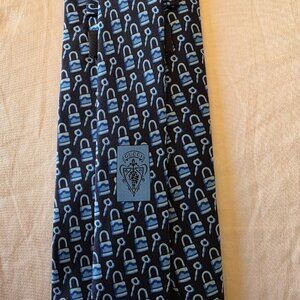 Gucci Vintage Silk Tie Navy Blue Lock & Key Print 100% Silk Made in Italy