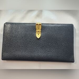 Style: Long continental or trifold wallet with a distinct buckle clasp