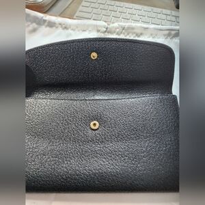 Gucci Vintage Sylvie Leather Long Continental Wallet or similar style, featuring a gold-tone buckle closure. This specific design is a vintage item, meaning it is not currently sold in Gucci stores, but it can be found through various online resale and vintage luxury retailers.