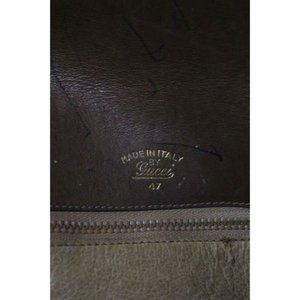 It predates serial numbers but has a gold embossed stamp that reads 'Made in Italy by Gucci, 47'.