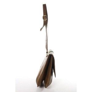 Gucci Vintage Tanmedium Brown Leather Shoulder Bag With Red Green Center