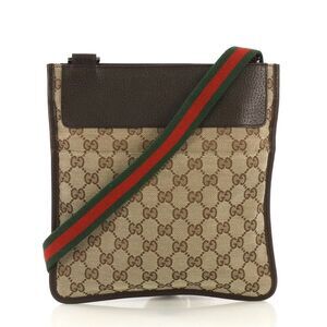 Authentic Gucci Vintage Web Crossbody Bag GG Canvas with Leather Small