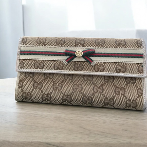 • Style Name: This specific design is often associated with the Gucci Princy or Mayfair lines due to the bow detail and the signature green and red Web stripe. The pattern is the classic GG monogram on