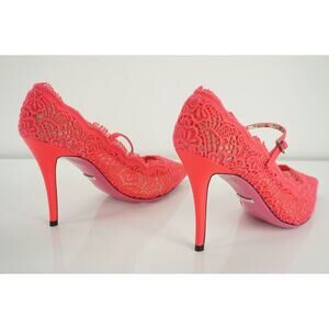 Gucci Virgina 95 Pink Lace Pointed Toe Pumps MJ Strap Size 39.5 NIB $1100 Neon