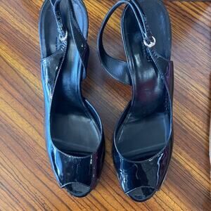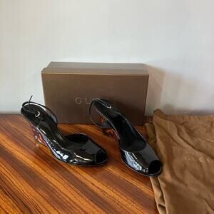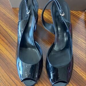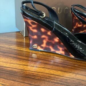 Gucci Vitello Vernice Soft Black Wedges Women 10 B.
