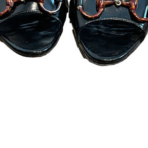 Gucci Vitello Vernice Soft Nero Black Open Toe Heels Women's Size 9.5 B
