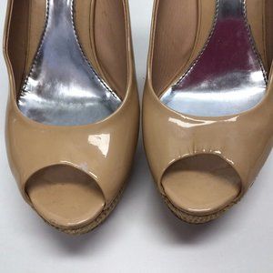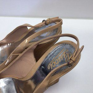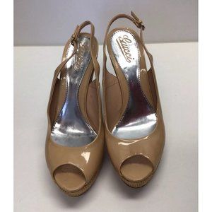 Gucci Vitello Vernice Wedge Sandals Size 41 Beige Patent Leather US 11 Shoes