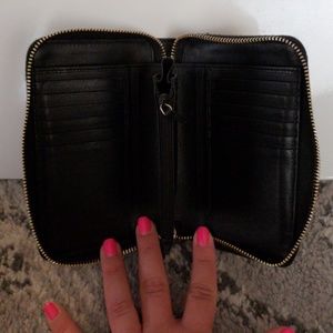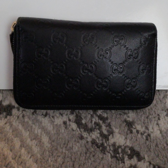Authentic Black Gucci Zip Around Wallet..monogram..Guccissima...gently used..in excellent condition. 7" x 4" closed. NO LOW BALL OFFER PLEASE.