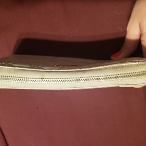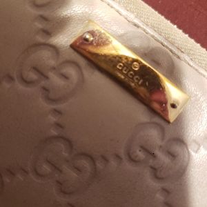 Gently used. Needs a cleaning (total cost $15). Gorgeous soft leather Gucci wallet. Light beige. Wallet is slightly dirty. Needs cleaning but otherwise like new.