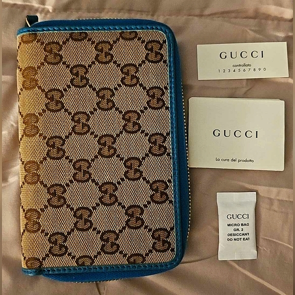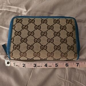 Gucci wallet lined in beautiful teal leather. Wallet in very good condition, great size.