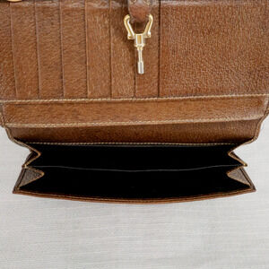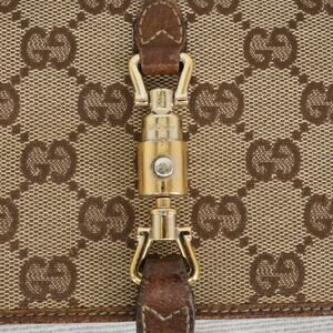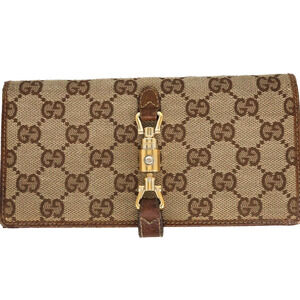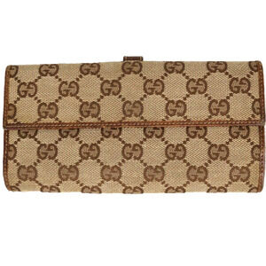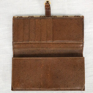 Gucci Wallet Clutch Womens Beige Brown Canvas Leather Trim Lined Pin Latch