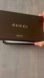 Preloved authentic Gucci long wallet, Ladies Web, monogram canvas and leather, tan and beige, powder beige stripe detail. Snap button closure.