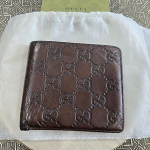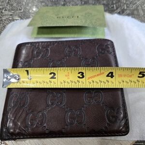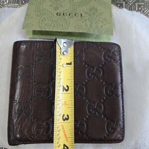 This genuine Gucci Wallet is a Mens style but really it is unisex and can be used by women as well. 3 card slots, 2 slots for bills two side pockets and a small coin pouch. It's all you need!