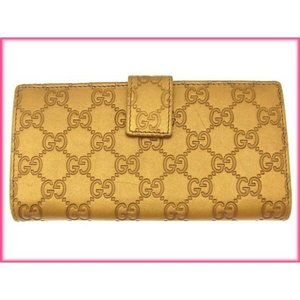 Gucci Wallet Purse Long Wallet Guccissima Gold Woman Authentic Used Y2785