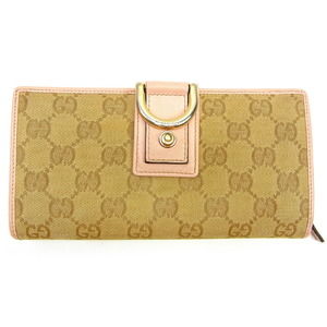 Gucci Wallet beige canvas leather GG pink long accessory