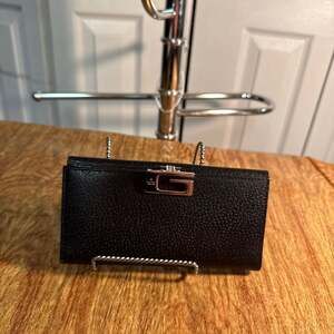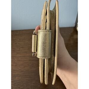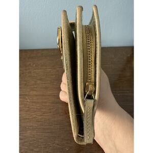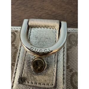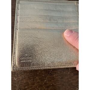 The Gucci Wallet with Change Holder is a stylish and luxurious accessory designed for women. Made from high-quality leather and featuring a geometric pattern, this wallet is crafted with attention to detail and stunning gold leather. With its lite brown color and iconic Gucci logo accents, it is a sophisticated choice for those who appreciate designer fashion. This one-size wallet includes credit card slots and a folding design, making it both practical and chic for everyday use. Made in Italy, this Gucci wallet exudes timeless elegance and class.
