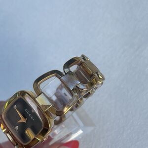 Elevate your style with this stunning Gucci wristwatch featuring a beautiful black dial with diamond accents. The rose gold plated bracelet adds a touch of elegance to this already luxurious timepiece. Made in Switzerland, this watch is Swiss made and boasts an analog display.
