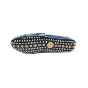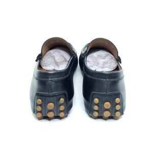 Gucci Driving Loafers Moccasins Black Leather Web Trim Slip On Mens US 10