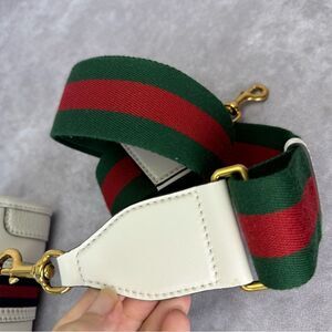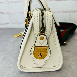 Authentic Gucci Web Sherry Line 2 Way Mini Bowling Leather Bag 715771 White
