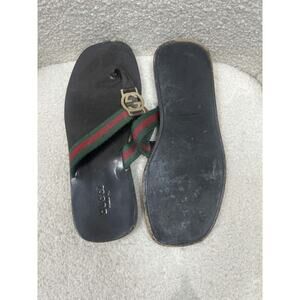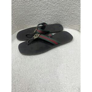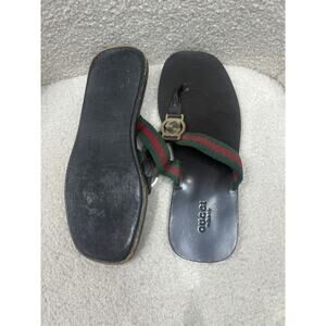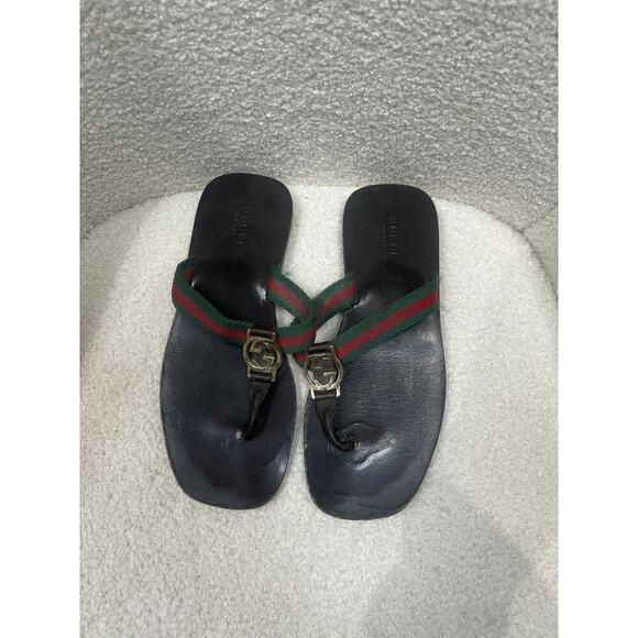 Gucci, Web Strap Sandals, Logo Sandals, Black, Red and Green, Size 5.6, Designer Sandals, Women's Shoes, Luxury Footwear, Casual Fashion, Summer Shoes, Iconic Gucci Design