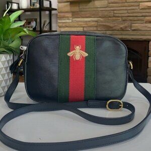 Gucci Webby Bee- Leather Crossbody Camera Bag
