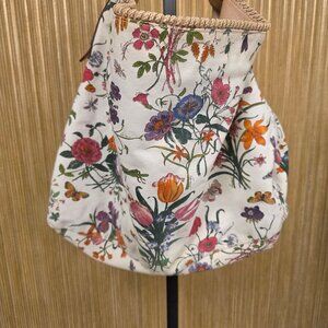 Gucci White Flora Horsebit Handbag Large Authentic Flower Butterfly Cricket