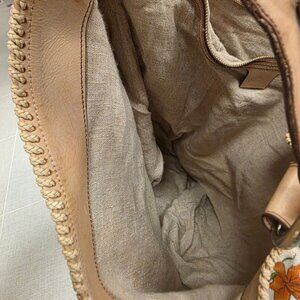 SEE PHOTOS FOR CONDITION - one spot on front -interior canvas one small tear, wear to the hardware and leather but overall really good condition