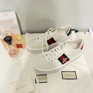 Gucci White Leather Crystal Studded Ace Lace Up Sneakers Size 38