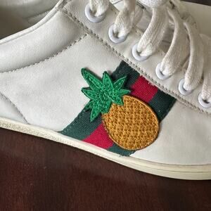 Gucci leather sneaker with pineapple and ladybug embroidery at green/red/green webbing size 36.5.