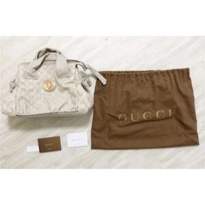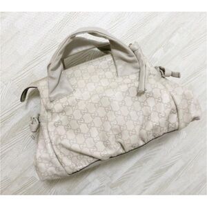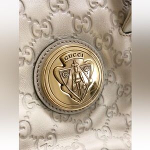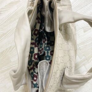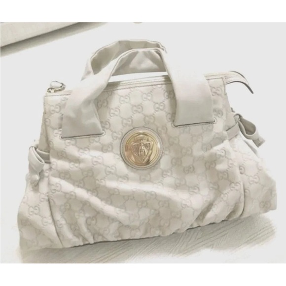 Gucci White Shoulder Bag with Gold Emblem