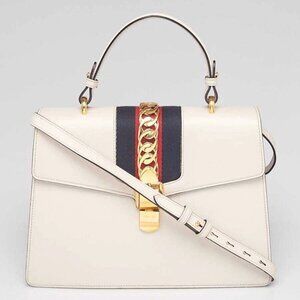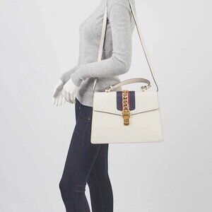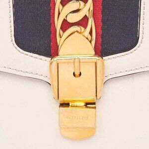 Gucci White Smooth Leather Calfskin Leather Vintage Web Medium Sylvie Shoulder