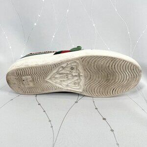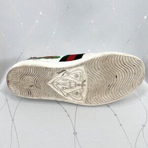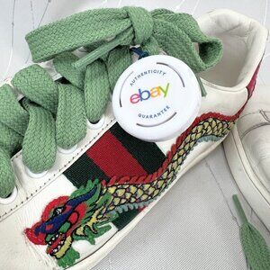 Gucci White Sneakers with Green Laces and Dragon Embroidery