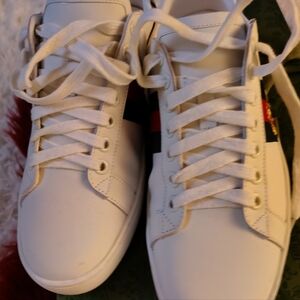 Gucci White Sneakers with Red and Green Accents