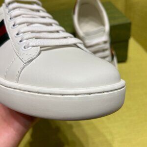 Stylish Gucci sneakers. White leather with iconic red and green stripes. Perfect for casual wear. Brand new, never been worn.