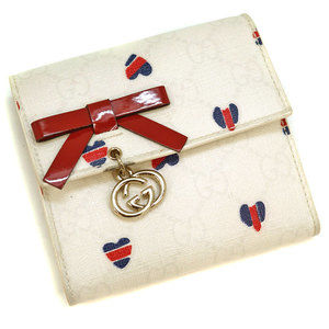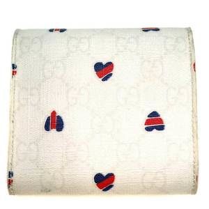 GUCCI Tri Wallet GG Canvas Heart Ribbon White Red Blue Charm Includes a Certificate of Authenticity!