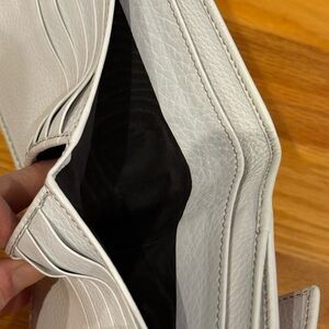 Sleek Gucci wallet with bold red and black stripes. Perfect for adding a touch of luxury to your essentials.