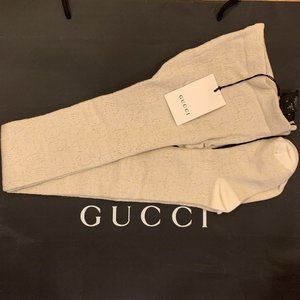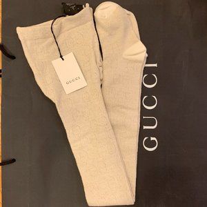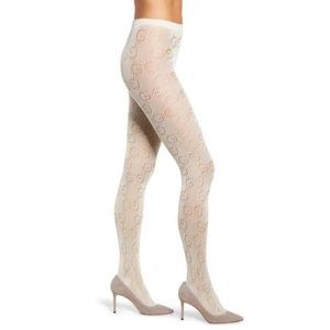 The Gucci Winter G Lurex Knit Tights in Ivory are cozy knit tights perfect for the winter season. In a soft wool blend, these ivory colored tights feature an interlocking G pattern with gold metallic accents.