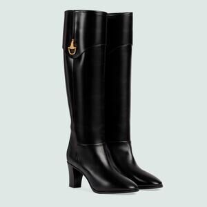 Gucci Woman Half horsebit knee length boot in Black Leather size 7.5