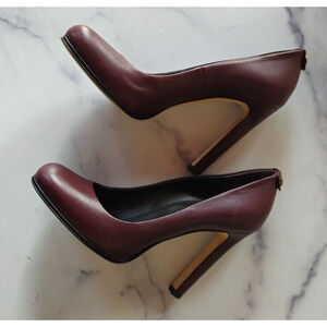 Gucci Women Pumps - Size 38 US 8 - Maroon Burgundy - Leather - Interlocking G Logo - High Heels - Slip On Shoes