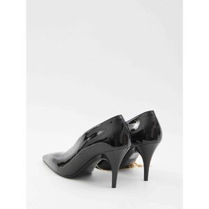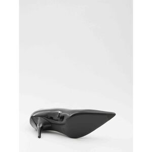 Black glossy patent leather sabot. Featuring an elongated pointed silhouette, removable ankle jewel in gold-tone metal, leather insole, and leather sole. Dustbag included. Any irregularities in the leather are not to be considered factory defects, but a characteristic of the material.<BR/>Heel height: 8.5 cm<BR/>Size: ITA. <BR/><BR />Size nationality: IT