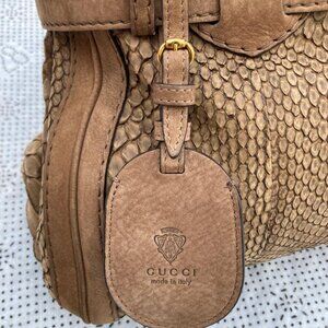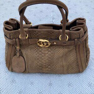 Gucci Women Tote Handbag Brown Python GG Running Satchel Bag