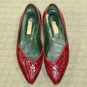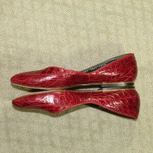 Gucci Women's 10 / 40.5 Red Patterned Leather Almond Toe Flats