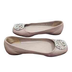 Gucci Women's Ballet Flats Pink Satin Square Toe GG Crystal Logo Designer Shoes Size EU 36/US 5.5