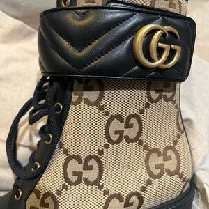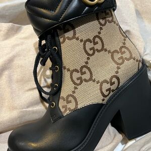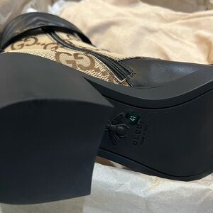 Step out in style with these chic Gucci women's ankle boots. Featuring a striking black and brown design, these boots offer both elegance and comfort. Perfect for any occasion, they are a must-have addition to your wardrobe.