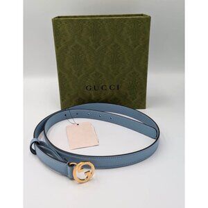 Gucci Women’s Blondie Ciny Interlocking Buckle Leather Belt Cloudy Blue 105cm 72