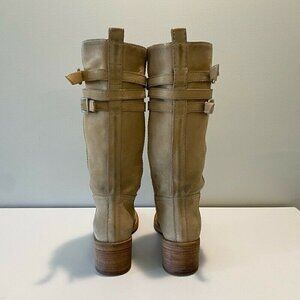 Gucci Womens Boots Beige Leather Round Toe Mid Calf Double Buckle Cuban Heels 7